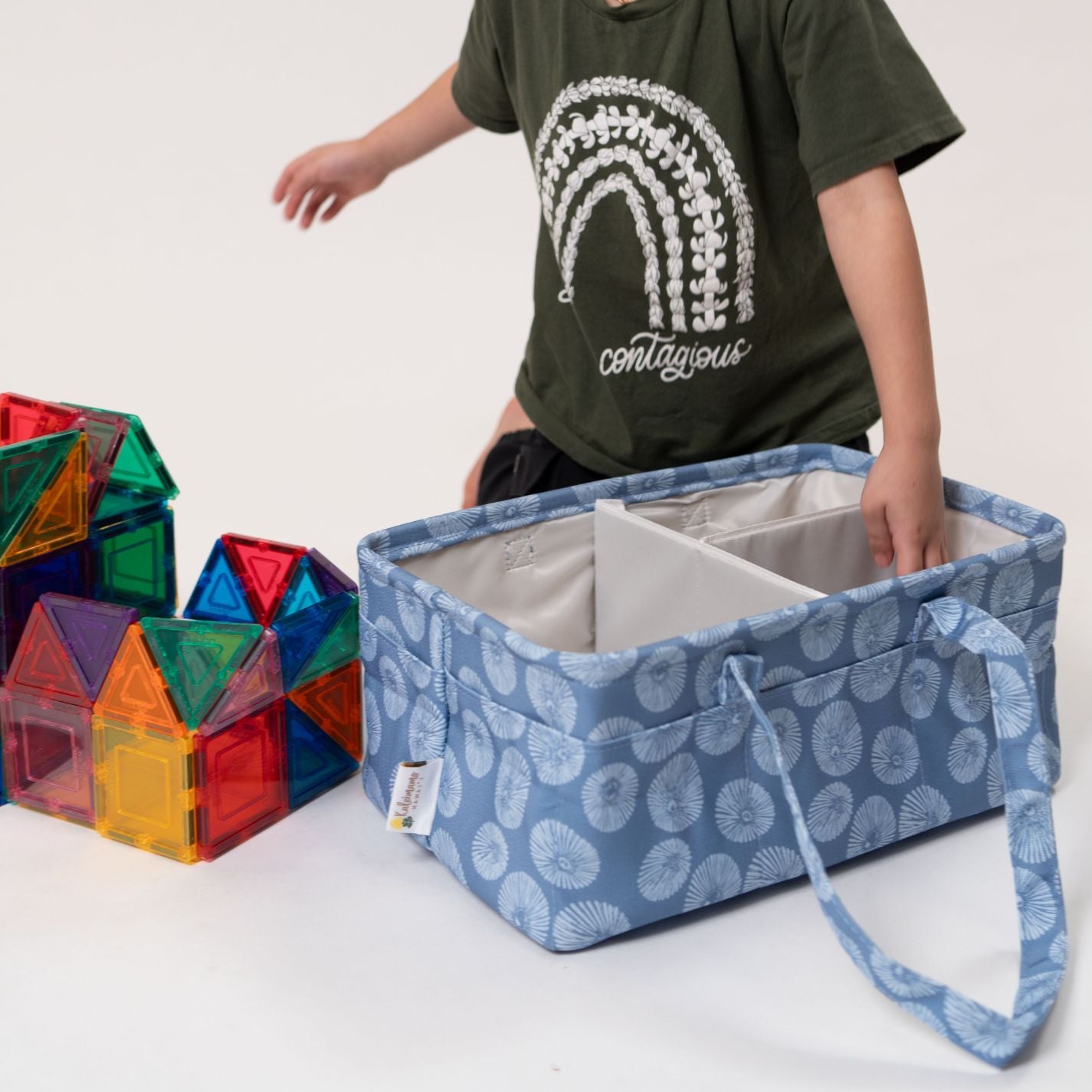 This is the organizer you’ve been waiting for! Say goodbye to clutter with our ‘Eke Kōkua (Caddy)! This caddy is your ultimate organizer and utility tote! For use at home, in the car, and everywhere in between, our caddy is perfect for organizing diapers, baby supplies, pumping parts, toys, books, crafting supplies, snacks and more!