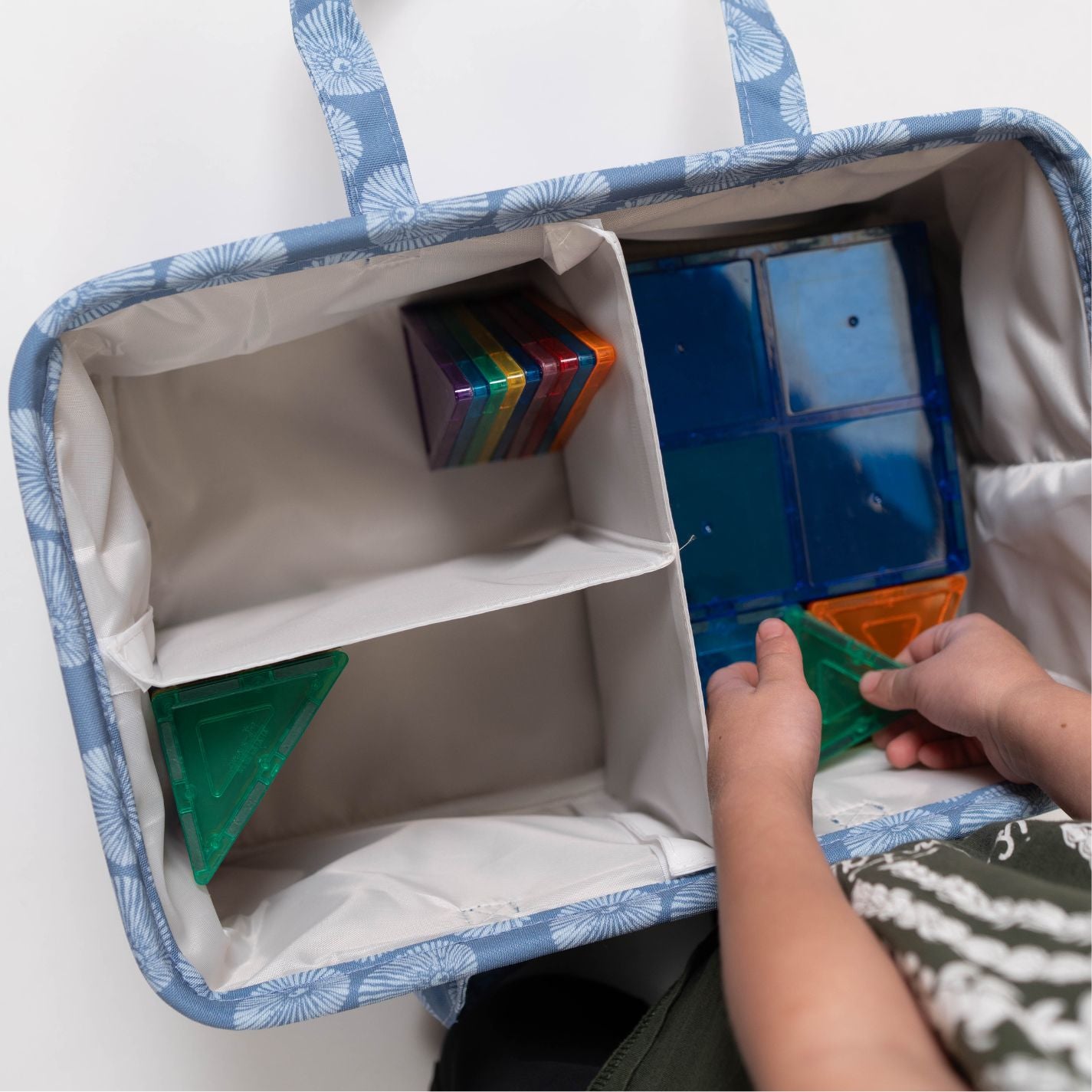 - This caddy is your ultimate organizer and utility tote! For use at home, in the car, and everywhere in between, our caddy is perfect for organizing diapers, baby supplies, pumping parts, toys, books, crafting supplies, snacks and more!