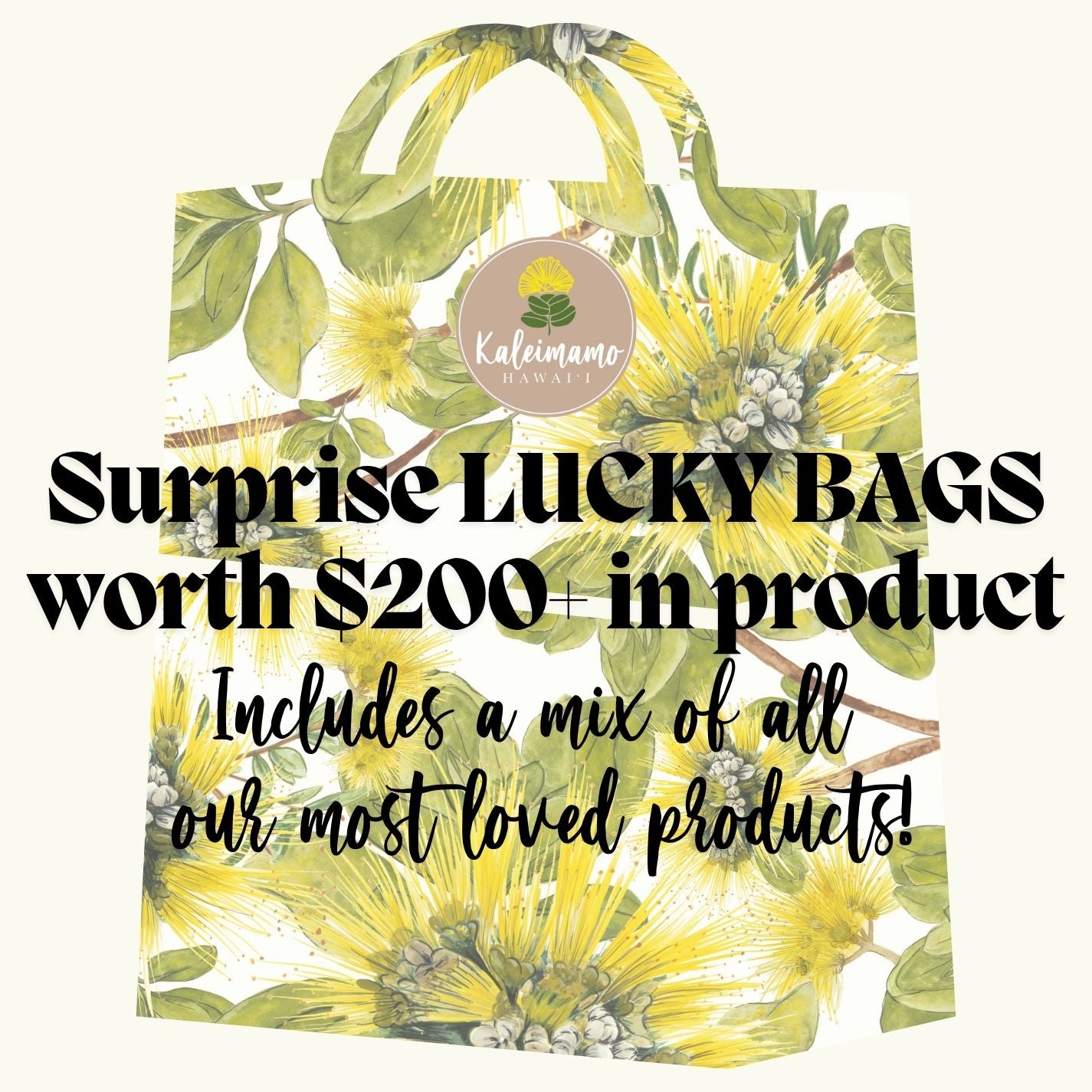 All sales final (no returns or exchanges). Available while supplies last, through 1/5. Fukubukuro Bags will begin shipping on 1/5. Mahalo nui!