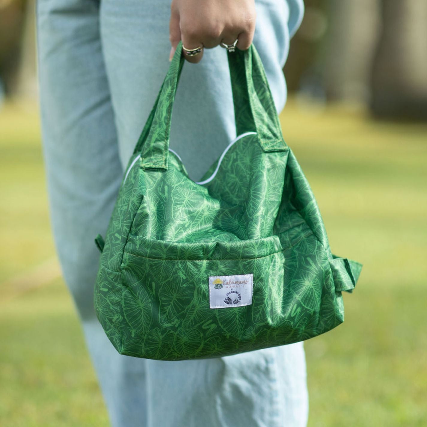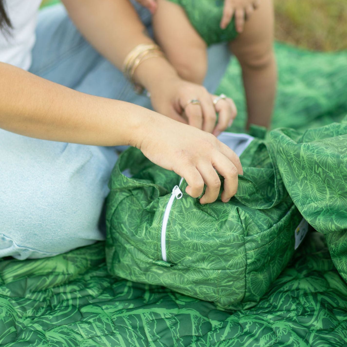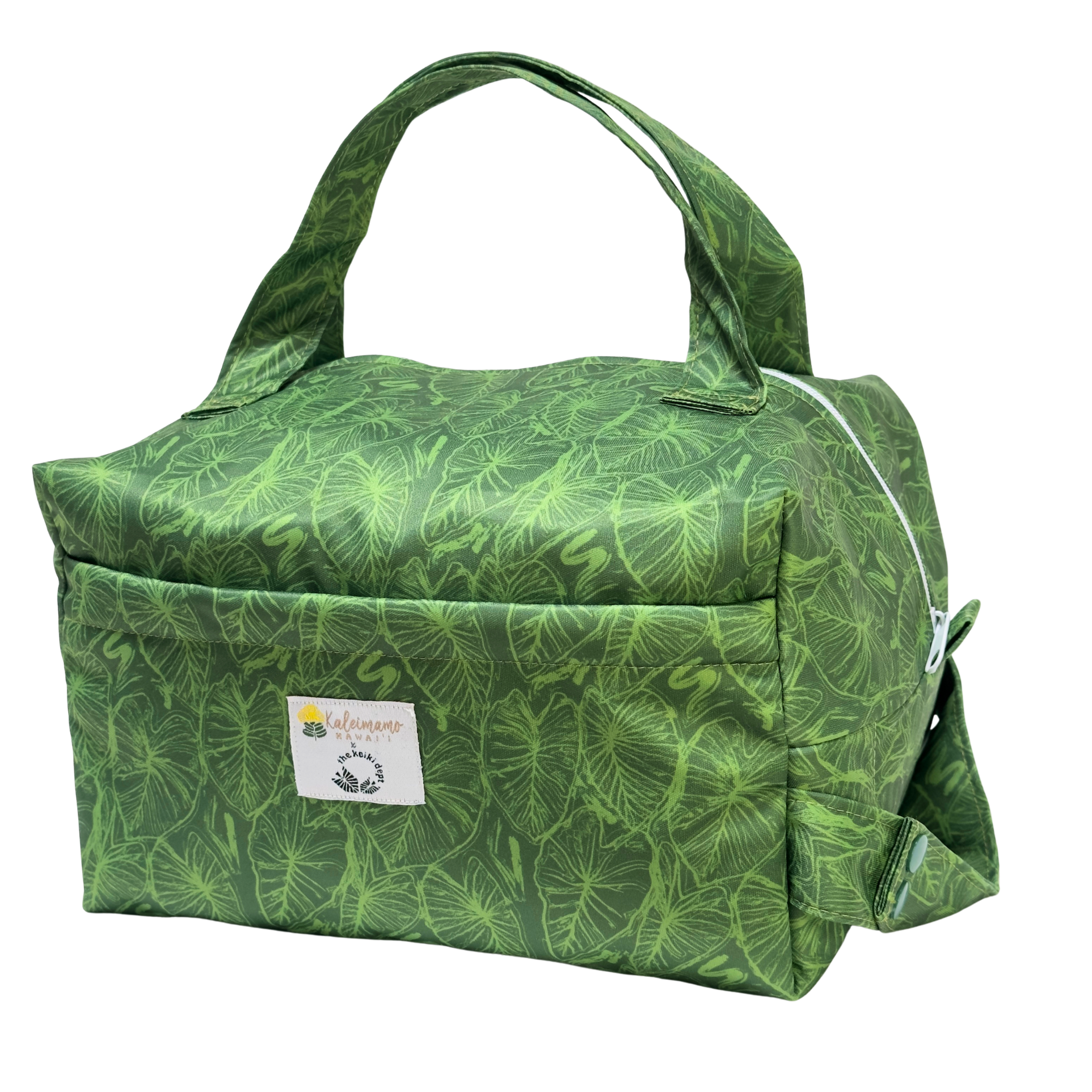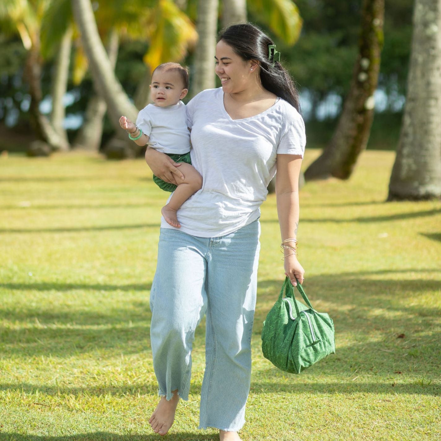 Our pod is incredibly versatile and is truly made for all of your needs! Made of double-layer water resistant material, our pod is perfect to pack a day's worth of cloth diapers for daycare or the grandparents' hale (house). It can also be used as an overnight bag, a beach bag for swimwear and snacks, and a toiletry bag too!