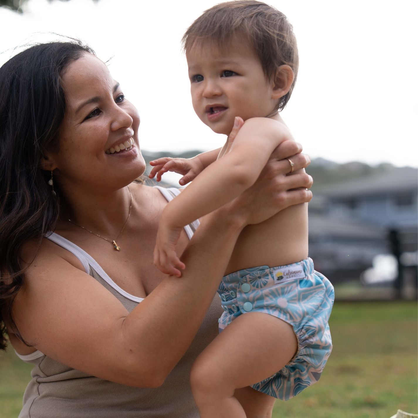 Mālama (care for) our oceans and planet by using a reusable swim diaper. Even if you do not use cloth diapers daily, using just one reusable swim diaper can decrease your consumption of single-use disposable diapers, and save you money! This diaper is comfortable and beautifully designed so that baby can swim in style!
