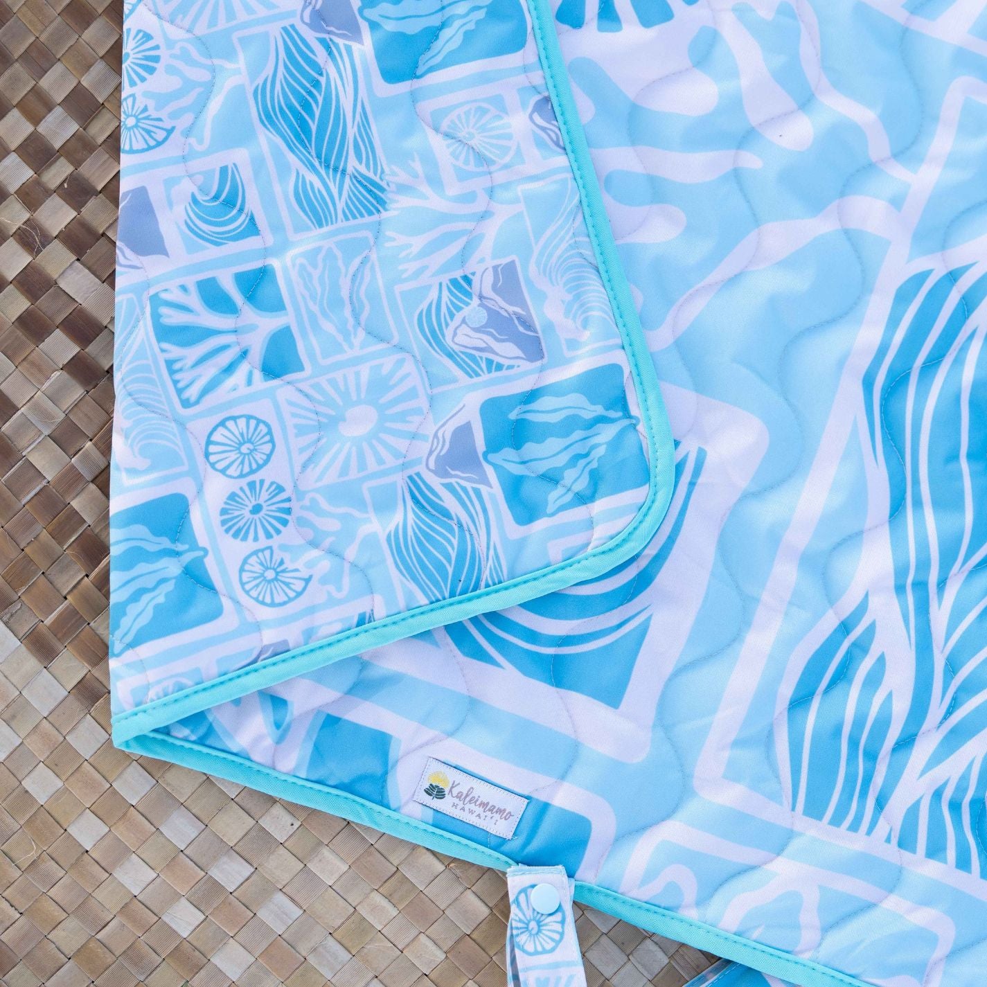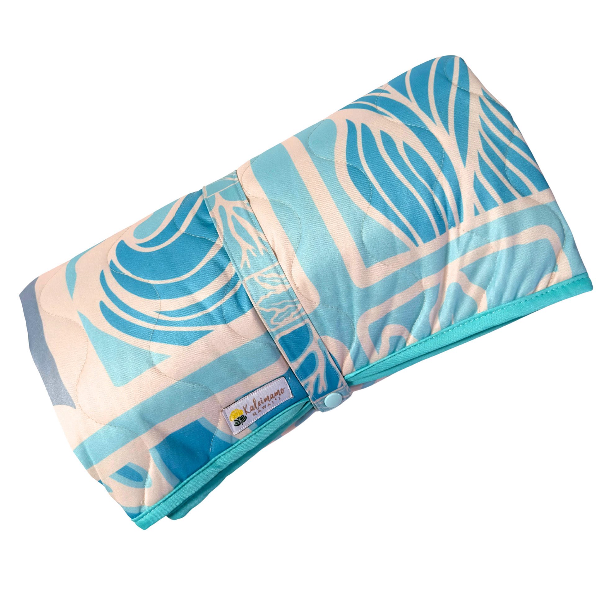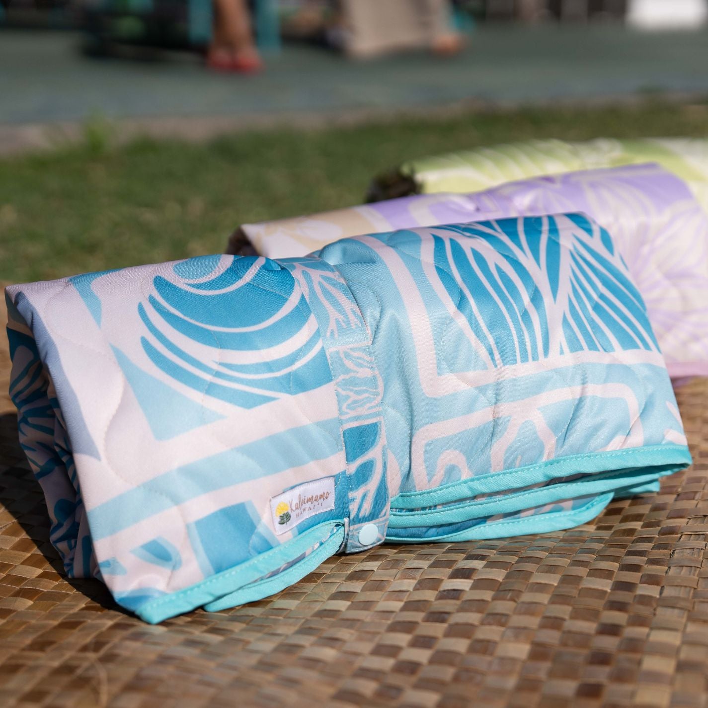 Perfect for a day at the beach. Sand and water just rolls right off of the mat. Just dust off, roll it up and snap it closed when you’re ready to go. Not to mention the design - so uʻi!