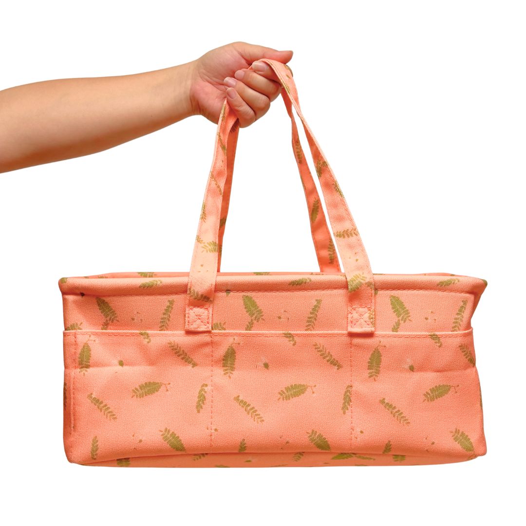 - This caddy is your ultimate organizer and utility tote! For use at home, in the car, and everywhere in between, our caddy is perfect for organizing diapers, baby supplies, pumping parts, toys, books, crafting supplies, snacks and more!
