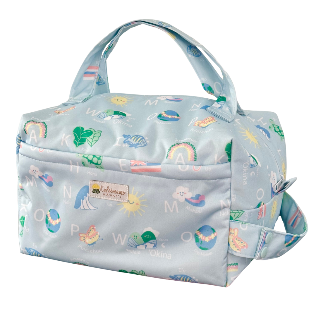 Our pod is incredibly versatile and is truly made for all of your needs! Made of double-layer water resistant material, our pod is perfect to pack a day's worth of cloth diapers for daycare or the grandparents' hale (house). It can also be used as an overnight bag, a beach bag for swimwear and snacks, and a toiletry bag too!